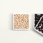 Noisettes lait or et noires, Coeurs céréales nacrés rouge, Chocolat praliné lait, Nougat amande