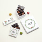 Noisettes lait or et noires, Coeurs céréales nacrés rouge, Chocolat praliné lait, Nougat amande