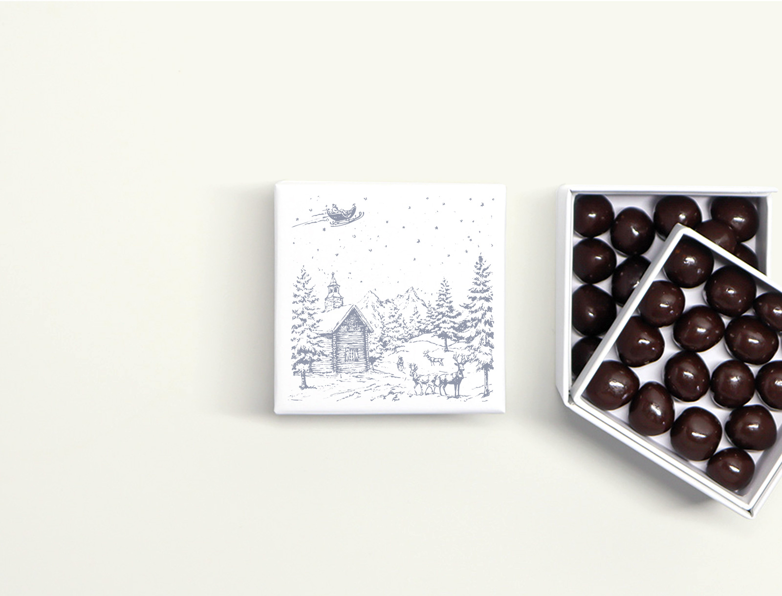 Inspiré d’un conte de Noël, ce coffret illustre un chalet blotti sous la neige, survolé par le Père Noël et ses rennes. Une création poétique pour faire voyager petits et grands dans la magie de l’hiver, tout en savourant nos douceurs faites maison.