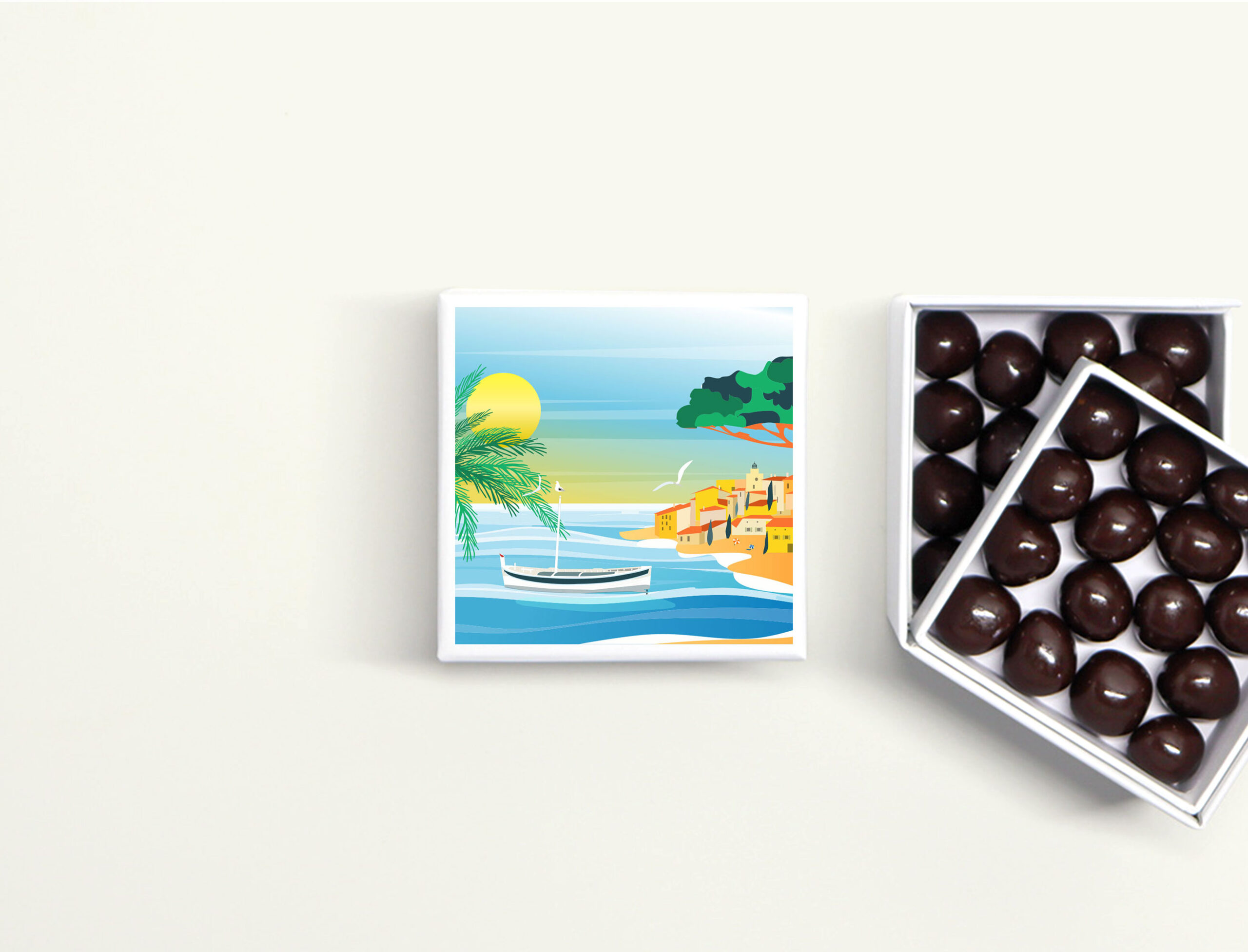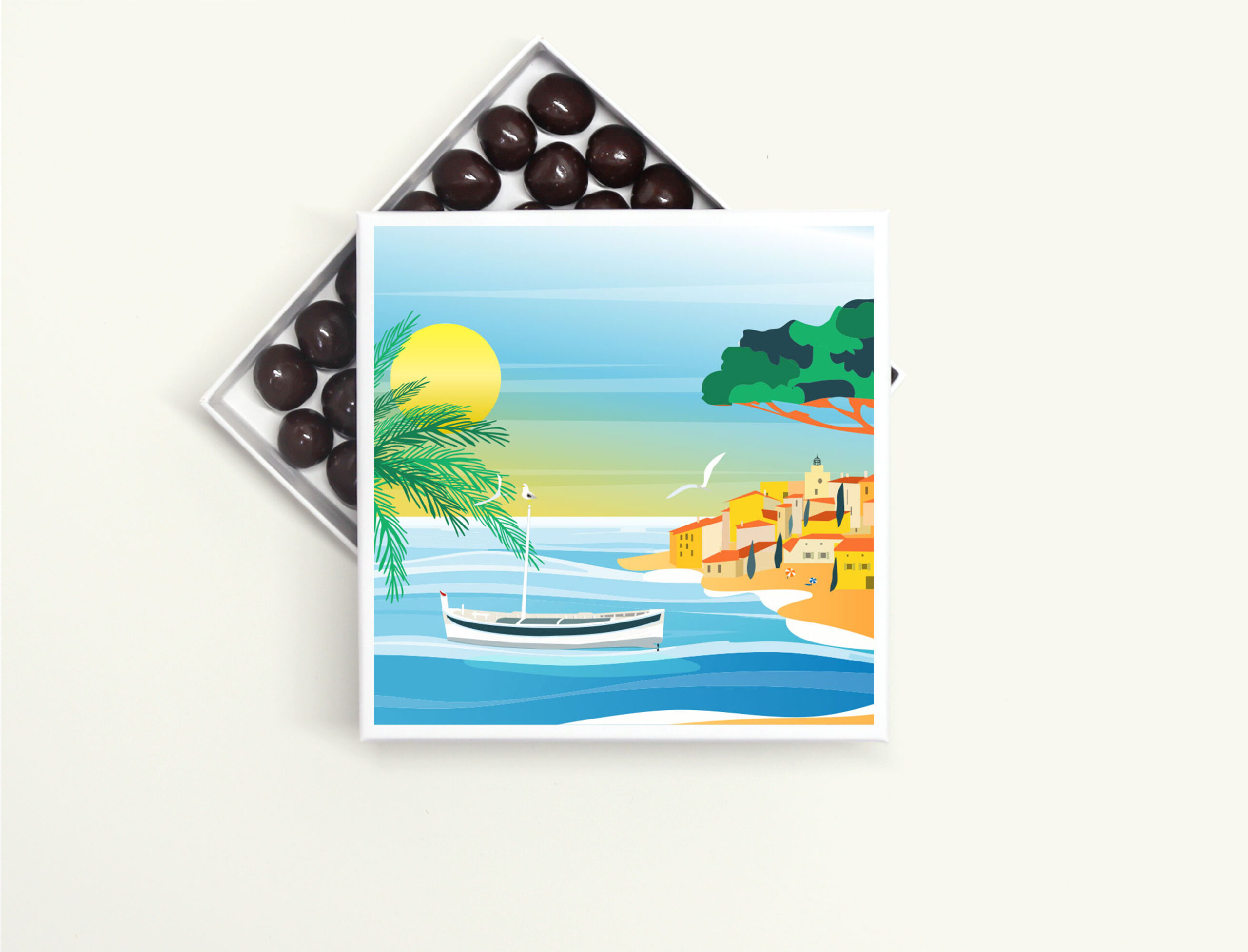 Vue mer, bateau amarré, ville ensoleillée… cette collection évoque le sud de la France dans toute sa douceur. Des illustrations estivales qui sentent bon la Méditerranée et les vacances.