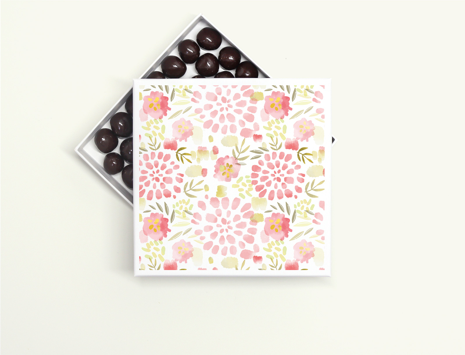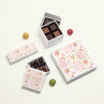 | Gourmandise | Noisettes lait or et noires, Coeurs céréales nacrés rouge, Chocolat praliné lait, Nougat amande |